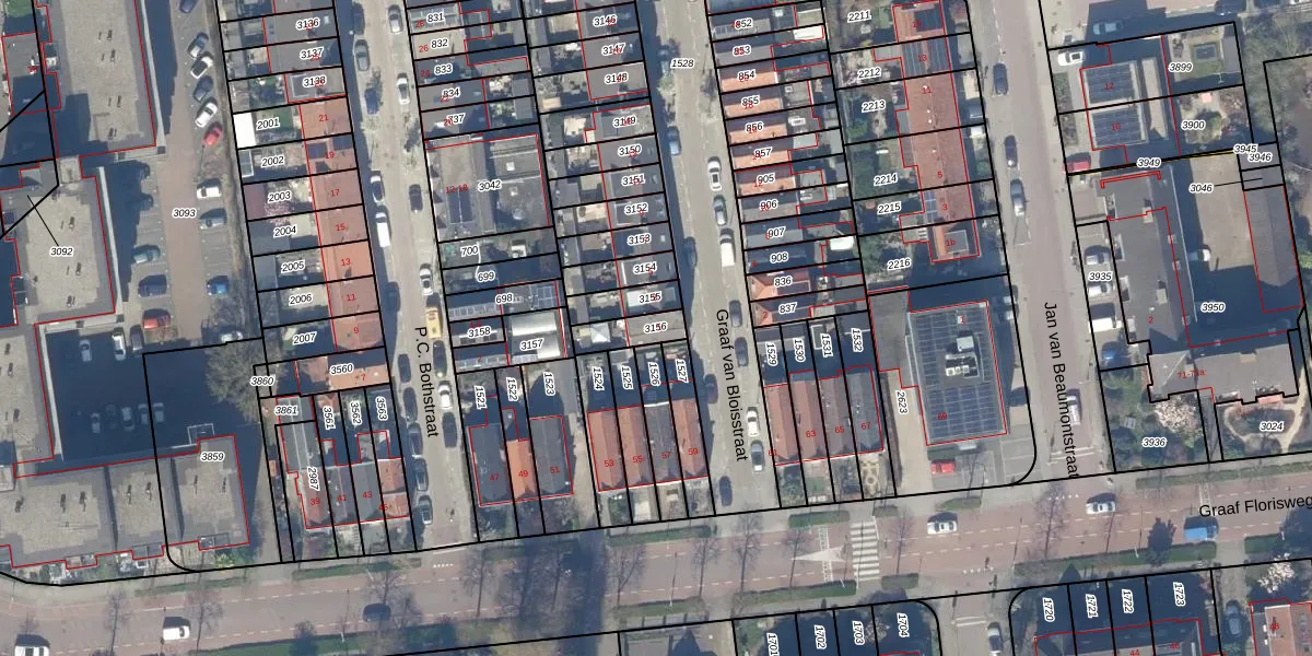 Gebruik de zoekbalk of klik op een perceel om informatie over het perceel te bekijken.