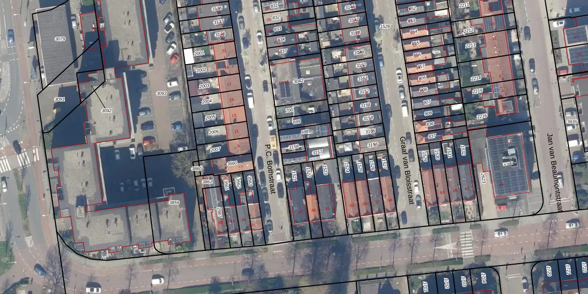 Gebruik de zoekbalk of klik op een perceel om informatie over het perceel te bekijken.