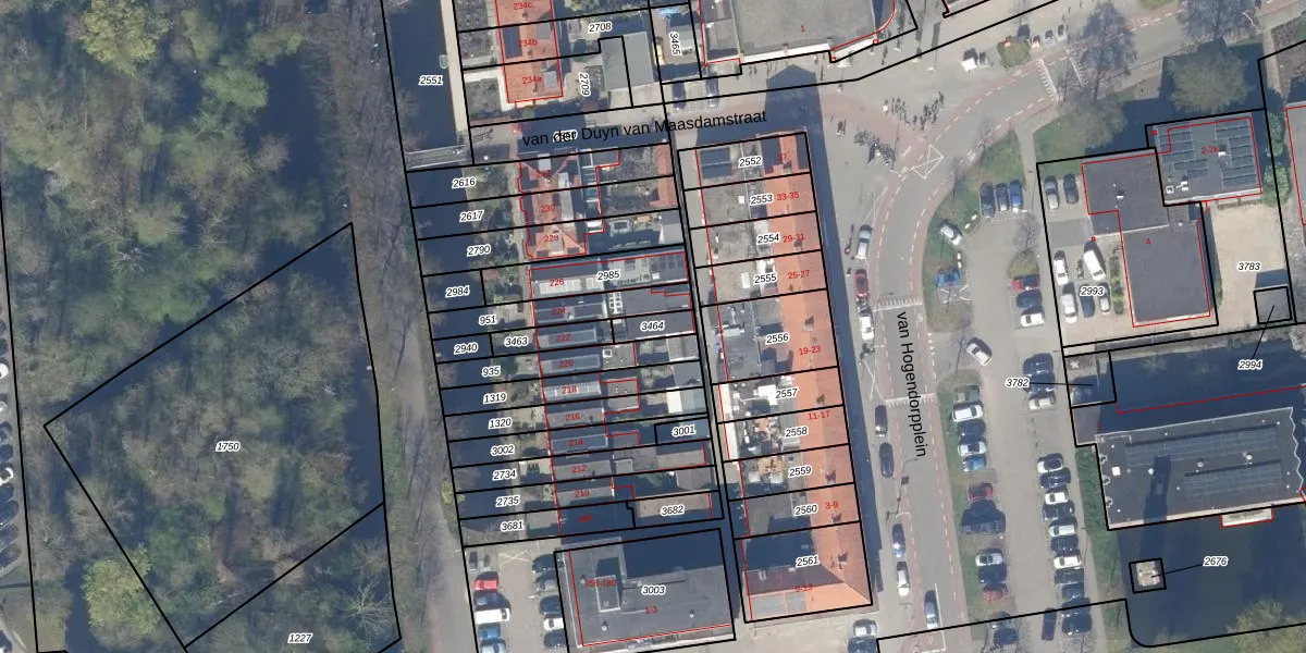 Gebruik de zoekbalk of klik op een perceel om informatie over het perceel te bekijken.