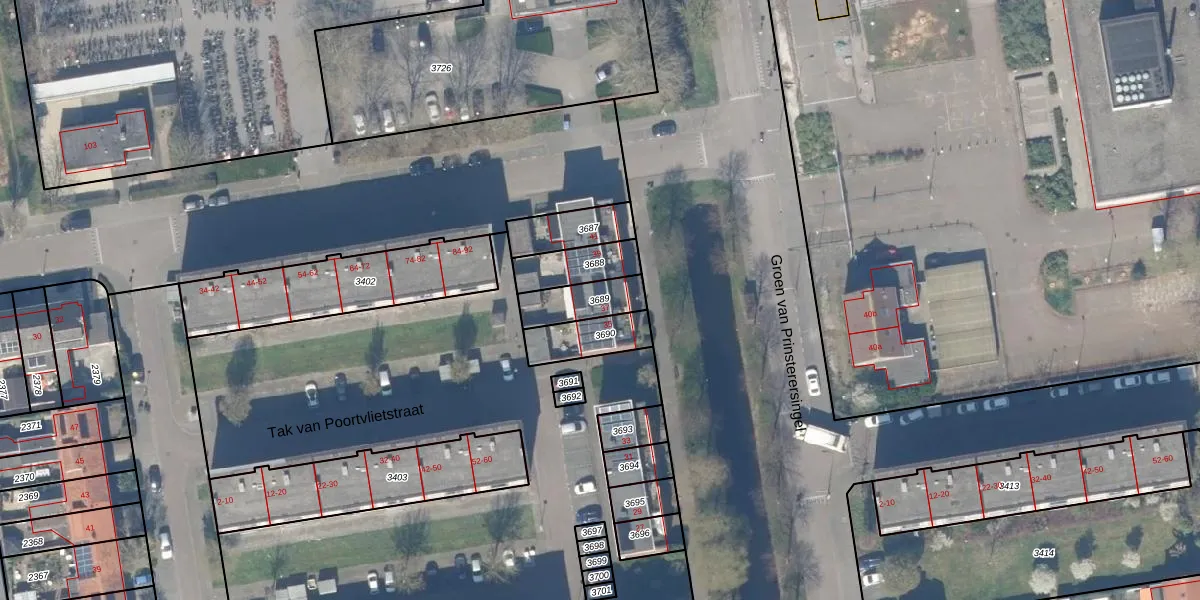 Gebruik de zoekbalk of klik op een perceel om informatie over het perceel te bekijken.