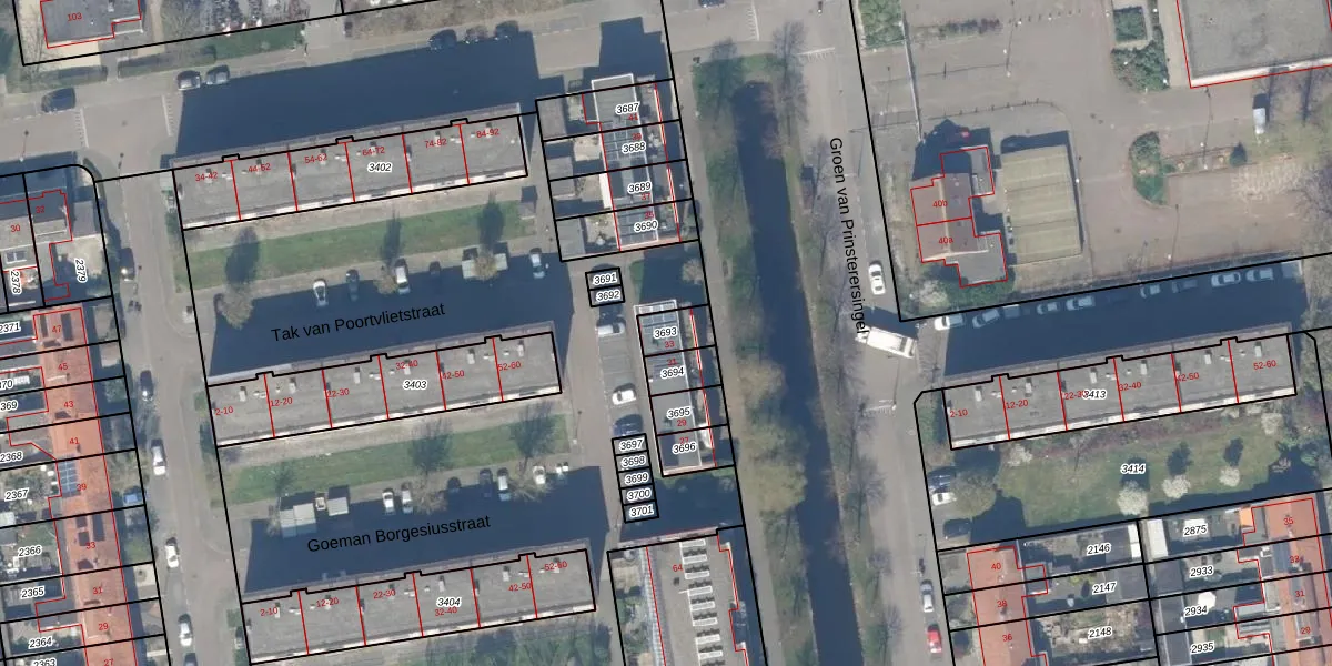 Gebruik de zoekbalk of klik op een perceel om informatie over het perceel te bekijken.