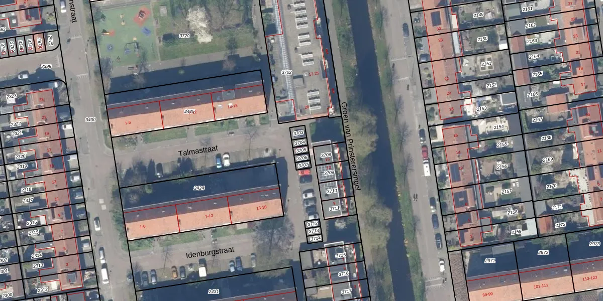 Gebruik de zoekbalk of klik op een perceel om informatie over het perceel te bekijken.