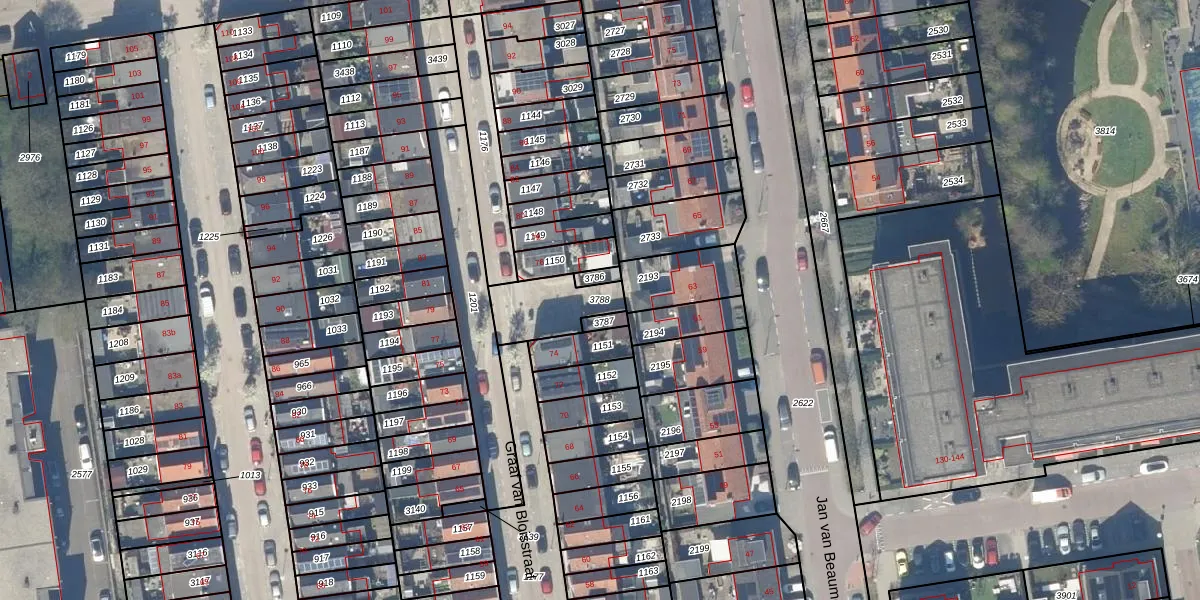 Gebruik de zoekbalk of klik op een perceel om informatie over het perceel te bekijken.