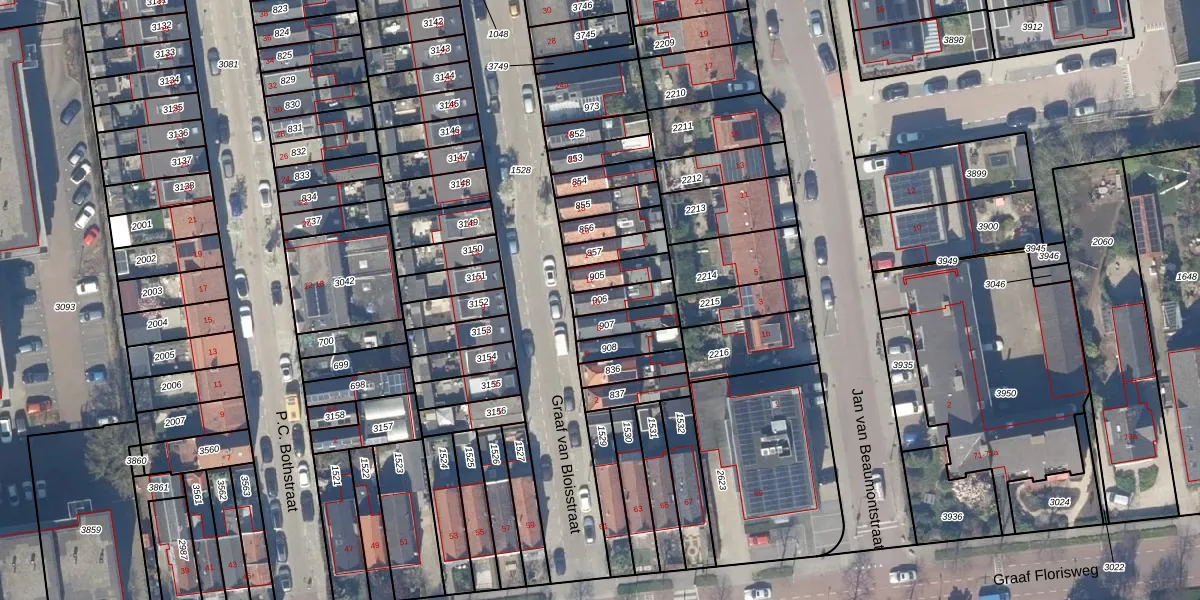 Gebruik de zoekbalk of klik op een perceel om informatie over het perceel te bekijken.
