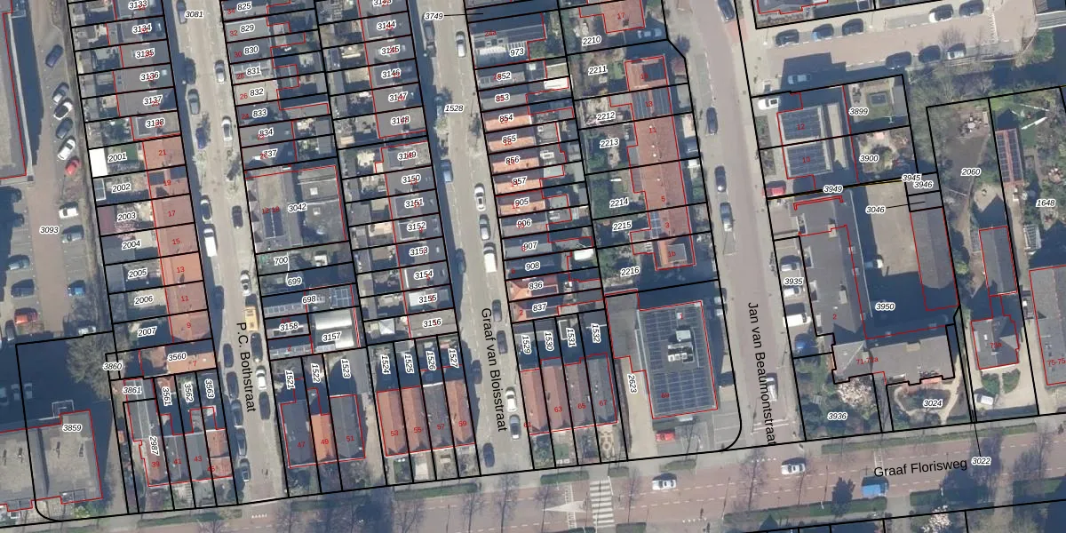 Gebruik de zoekbalk of klik op een perceel om informatie over het perceel te bekijken.