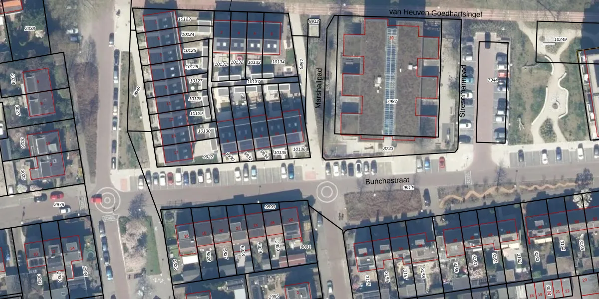 Gebruik de zoekbalk of klik op een perceel om informatie over het perceel te bekijken.