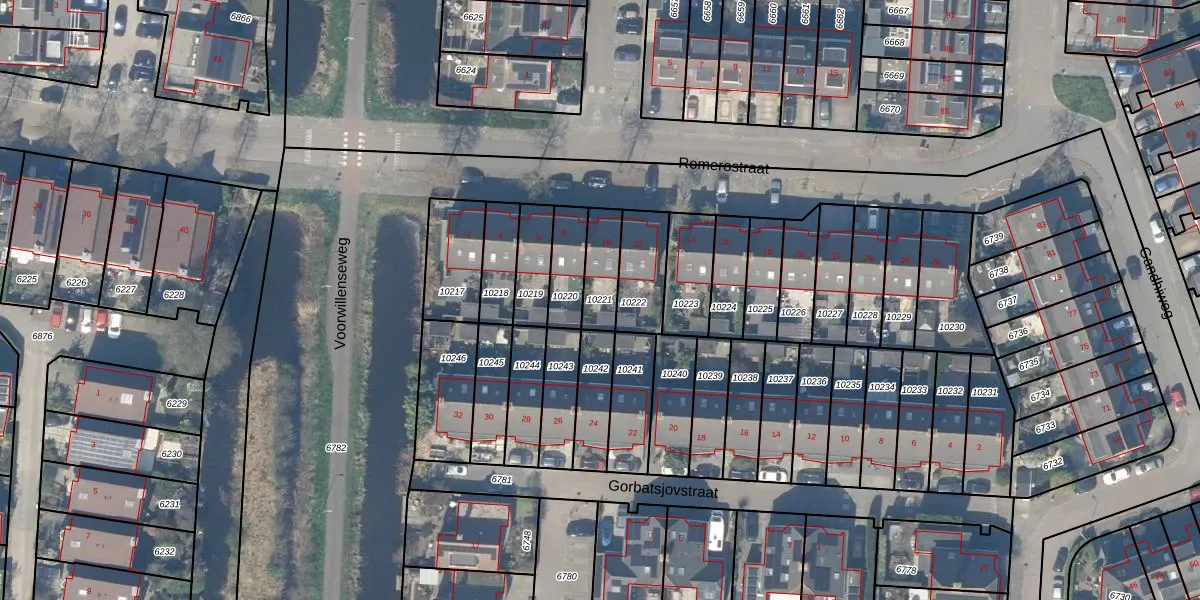 Gebruik de zoekbalk of klik op een perceel om informatie over het perceel te bekijken.