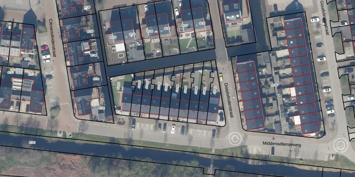 Gebruik de zoekbalk of klik op een perceel om informatie over het perceel te bekijken.