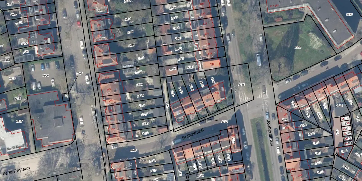Gebruik de zoekbalk of klik op een perceel om informatie over het perceel te bekijken.