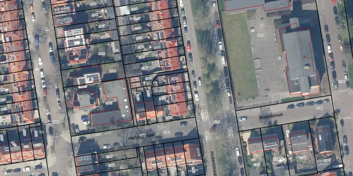 Gebruik de zoekbalk of klik op een perceel om informatie over het perceel te bekijken.