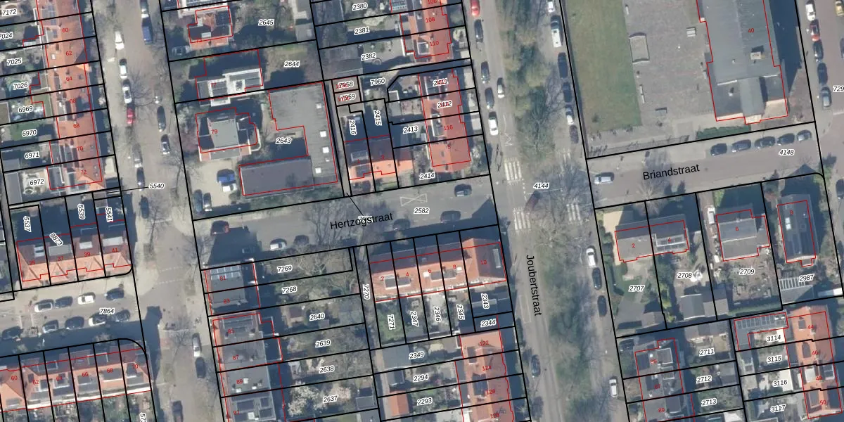 Gebruik de zoekbalk of klik op een perceel om informatie over het perceel te bekijken.