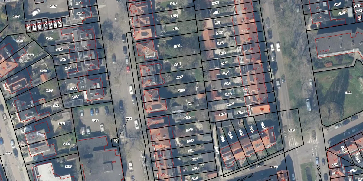 Gebruik de zoekbalk of klik op een perceel om informatie over het perceel te bekijken.