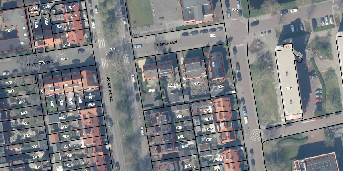 Gebruik de zoekbalk of klik op een perceel om informatie over het perceel te bekijken.