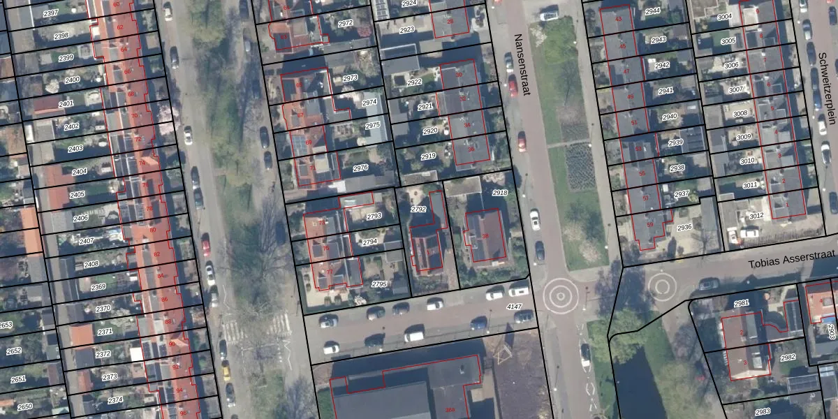 Gebruik de zoekbalk of klik op een perceel om informatie over het perceel te bekijken.