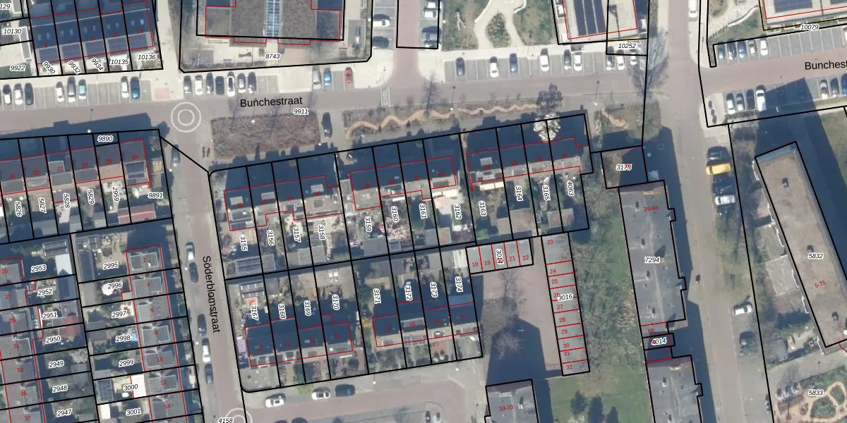 Gebruik de zoekbalk of klik op een perceel om informatie over het perceel te bekijken.