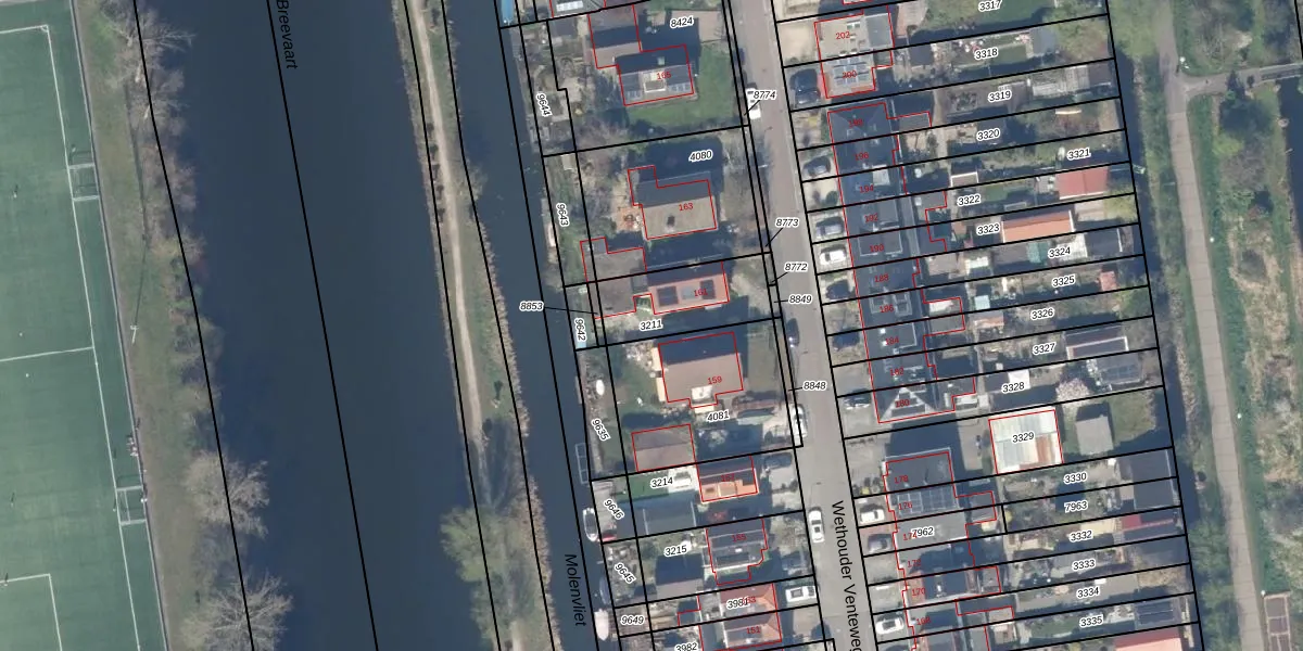 Gebruik de zoekbalk of klik op een perceel om informatie over het perceel te bekijken.