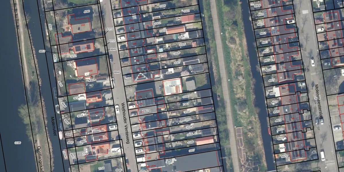 Gebruik de zoekbalk of klik op een perceel om informatie over het perceel te bekijken.