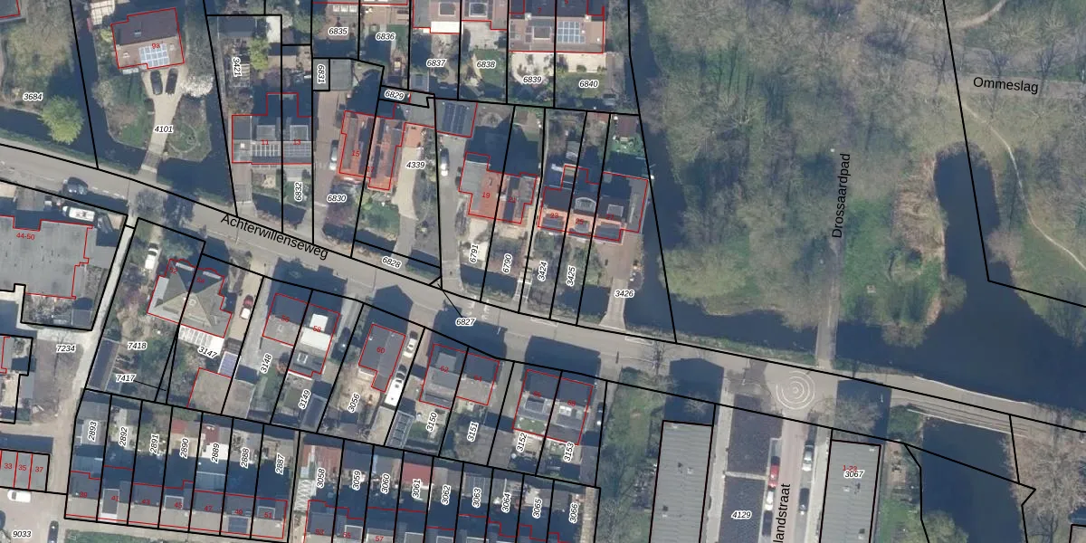 Gebruik de zoekbalk of klik op een perceel om informatie over het perceel te bekijken.