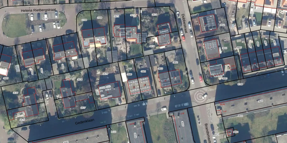 Gebruik de zoekbalk of klik op een perceel om informatie over het perceel te bekijken.
