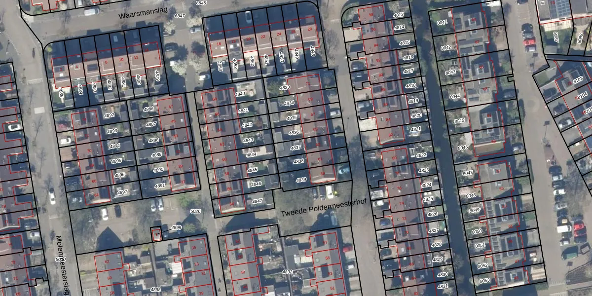 Gebruik de zoekbalk of klik op een perceel om informatie over het perceel te bekijken.