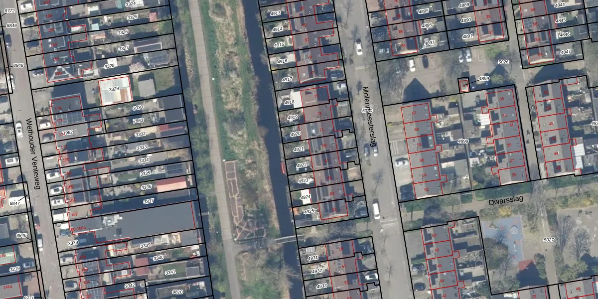 Gebruik de zoekbalk of klik op een perceel om informatie over het perceel te bekijken.