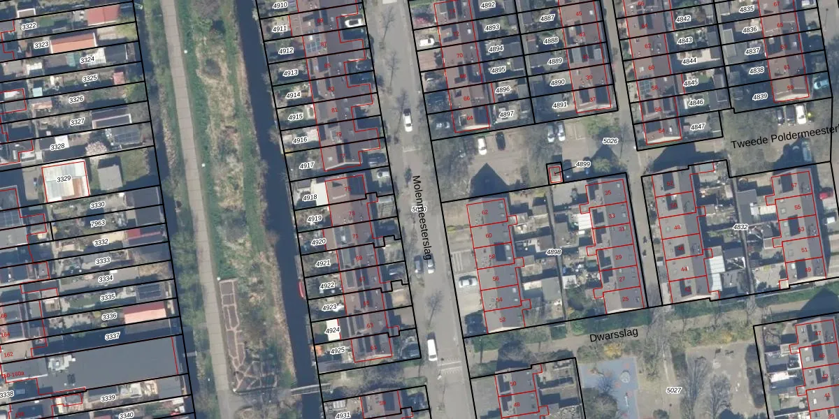 Gebruik de zoekbalk of klik op een perceel om informatie over het perceel te bekijken.