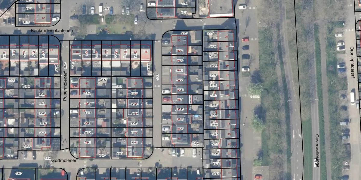 Gebruik de zoekbalk of klik op een perceel om informatie over het perceel te bekijken.