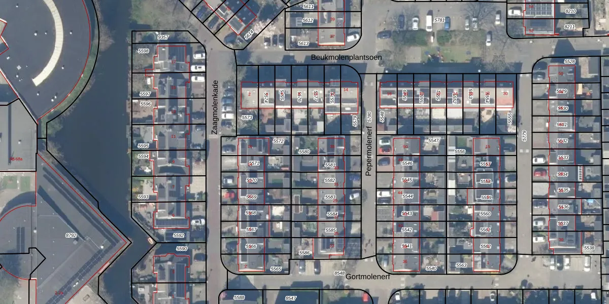 Gebruik de zoekbalk of klik op een perceel om informatie over het perceel te bekijken.