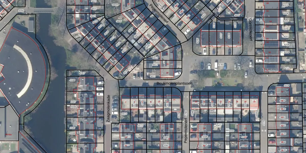 Gebruik de zoekbalk of klik op een perceel om informatie over het perceel te bekijken.