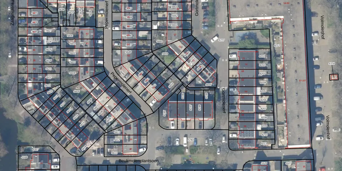 Gebruik de zoekbalk of klik op een perceel om informatie over het perceel te bekijken.