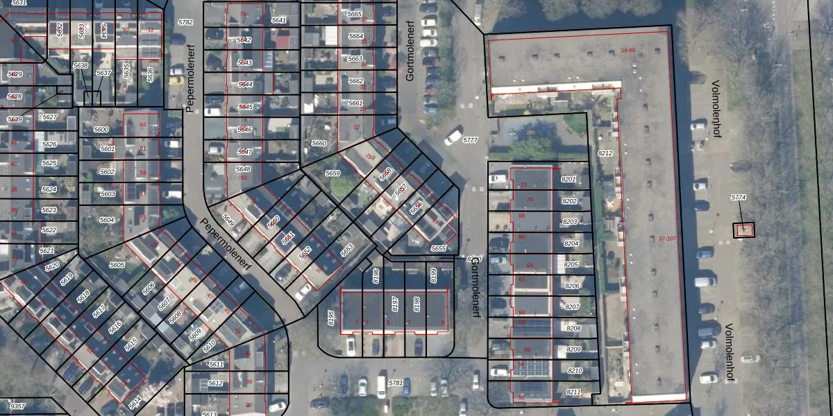 Gebruik de zoekbalk of klik op een perceel om informatie over het perceel te bekijken.
