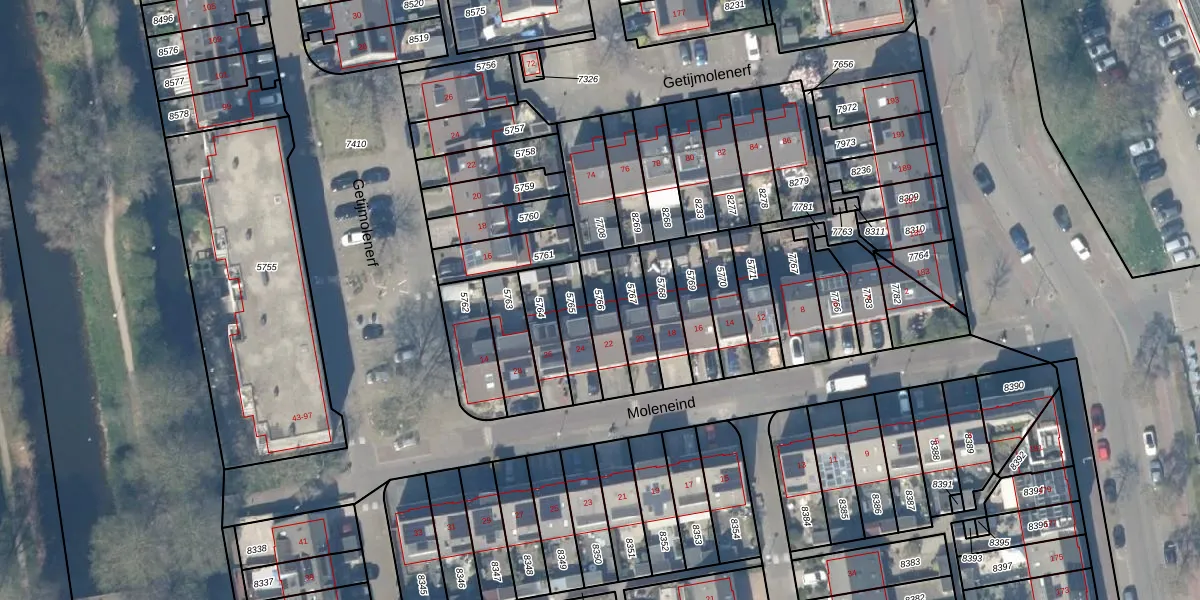 Gebruik de zoekbalk of klik op een perceel om informatie over het perceel te bekijken.