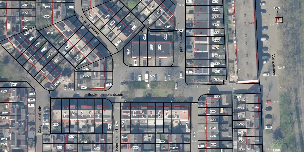 Gebruik de zoekbalk of klik op een perceel om informatie over het perceel te bekijken.