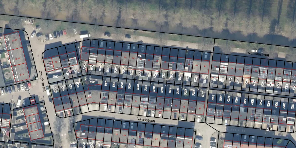 Gebruik de zoekbalk of klik op een perceel om informatie over het perceel te bekijken.