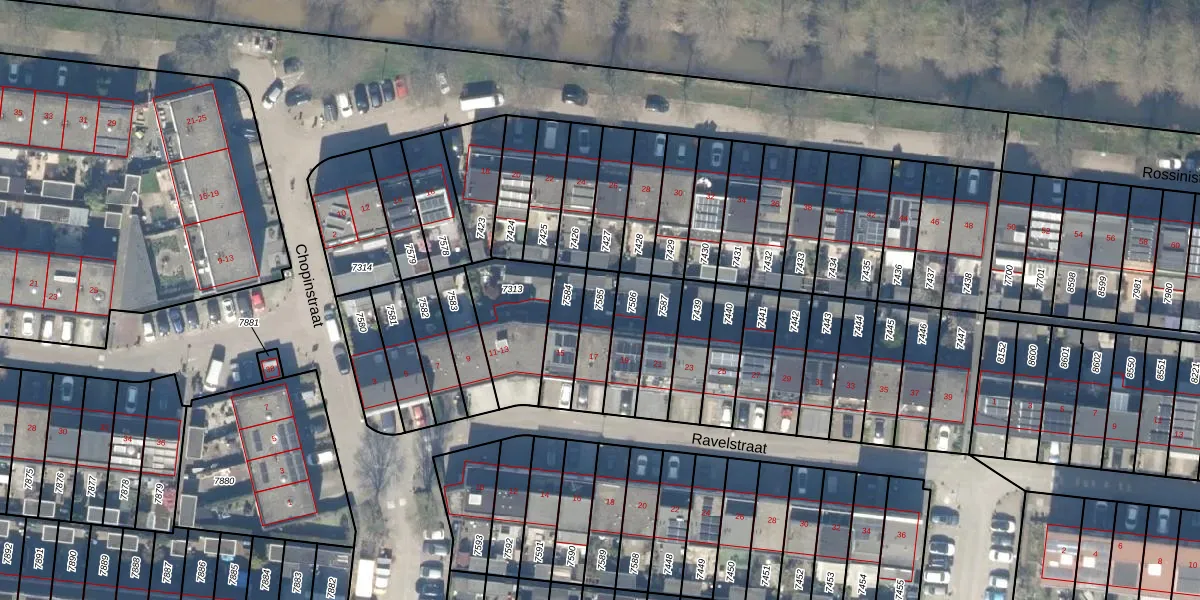 Gebruik de zoekbalk of klik op een perceel om informatie over het perceel te bekijken.