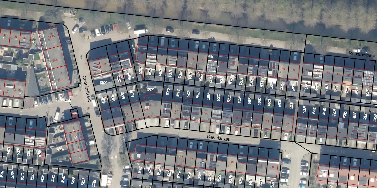 Gebruik de zoekbalk of klik op een perceel om informatie over het perceel te bekijken.