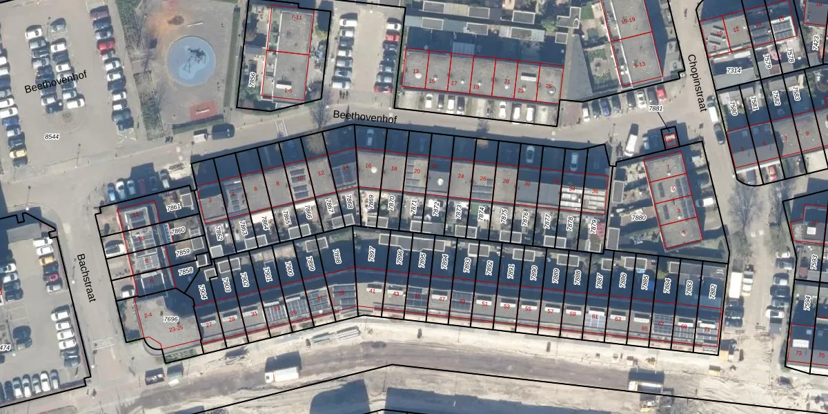 Gebruik de zoekbalk of klik op een perceel om informatie over het perceel te bekijken.