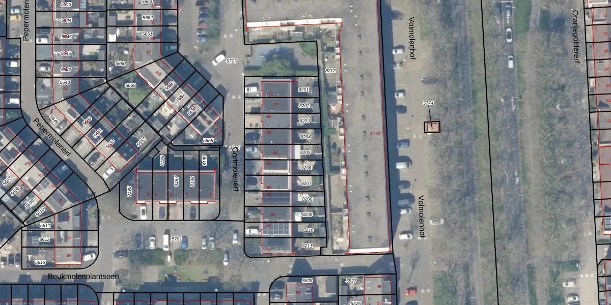 Gebruik de zoekbalk of klik op een perceel om informatie over het perceel te bekijken.