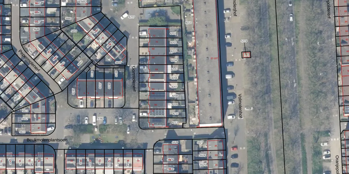 Gebruik de zoekbalk of klik op een perceel om informatie over het perceel te bekijken.
