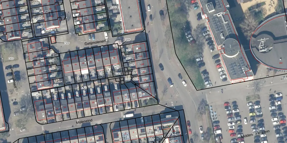 Gebruik de zoekbalk of klik op een perceel om informatie over het perceel te bekijken.