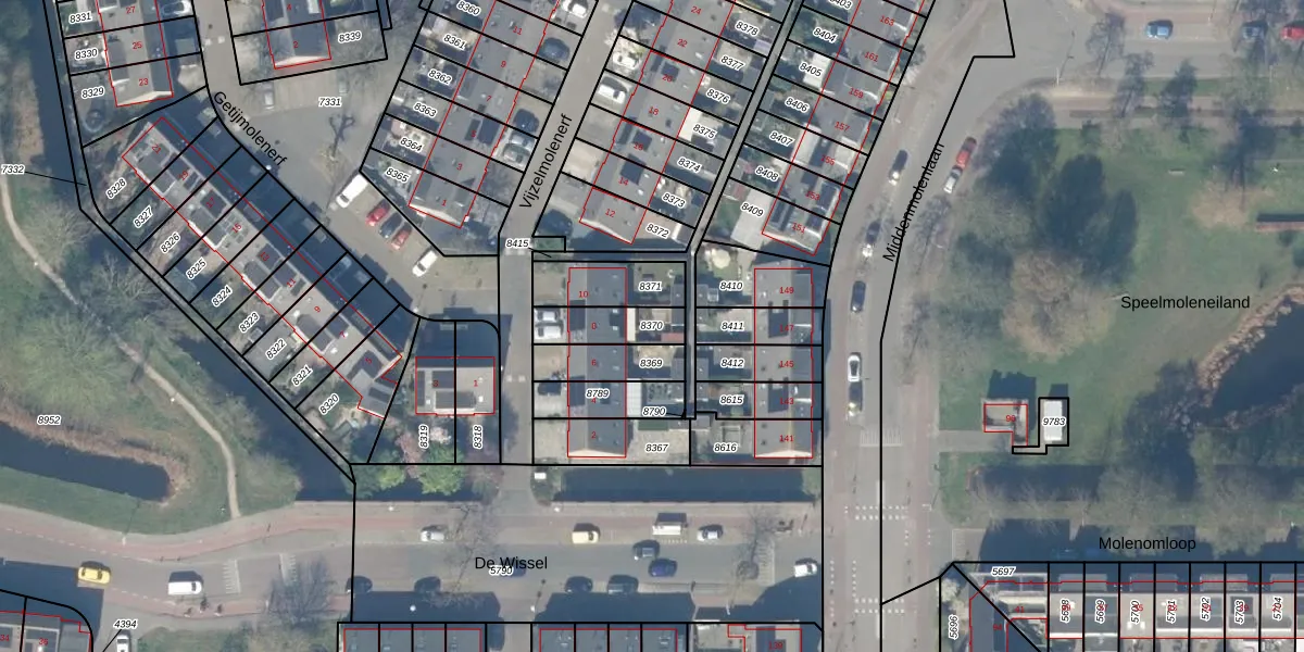 Gebruik de zoekbalk of klik op een perceel om informatie over het perceel te bekijken.
