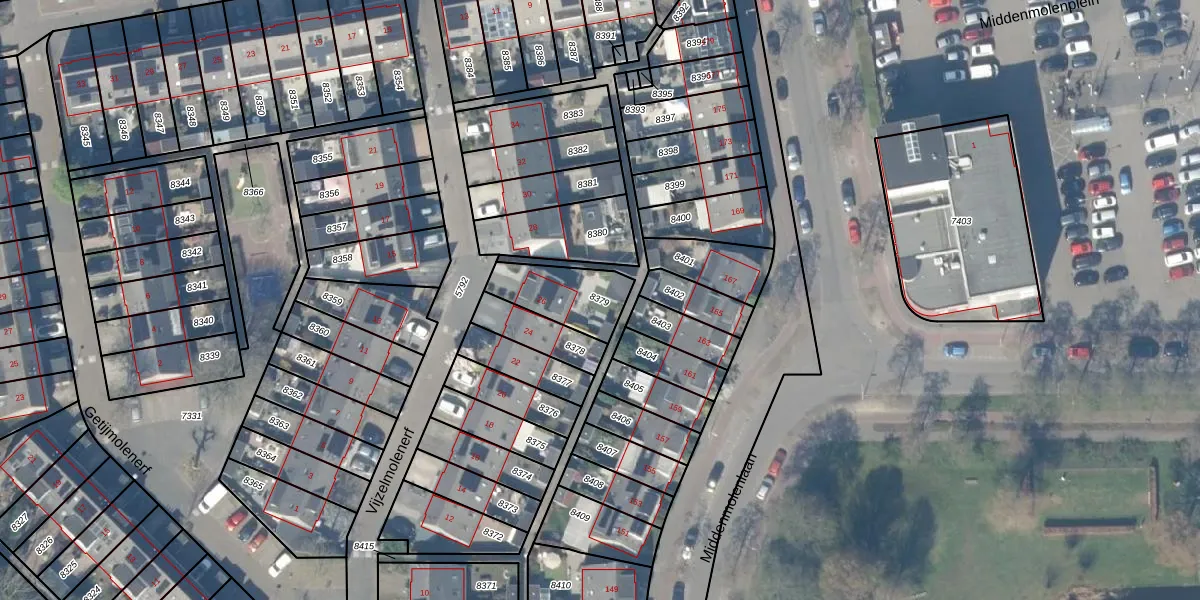 Gebruik de zoekbalk of klik op een perceel om informatie over het perceel te bekijken.