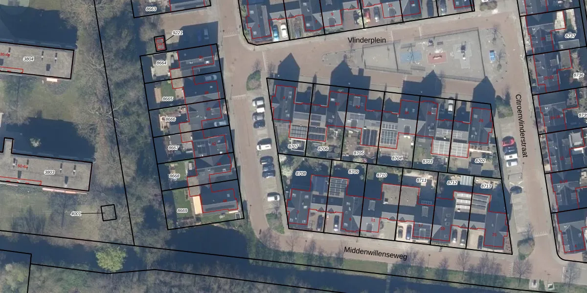 Gebruik de zoekbalk of klik op een perceel om informatie over het perceel te bekijken.
