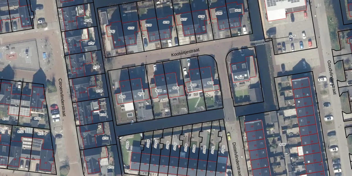 Gebruik de zoekbalk of klik op een perceel om informatie over het perceel te bekijken.