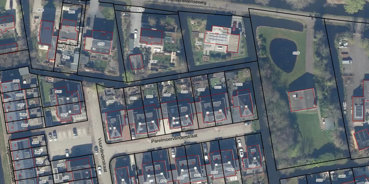 Gebruik de zoekbalk of klik op een perceel om informatie over het perceel te bekijken.