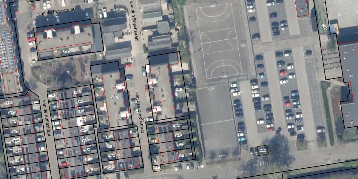 Gebruik de zoekbalk of klik op een perceel om informatie over het perceel te bekijken.