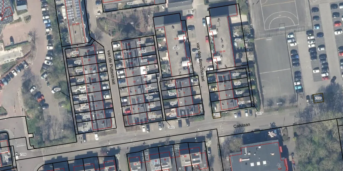 Gebruik de zoekbalk of klik op een perceel om informatie over het perceel te bekijken.