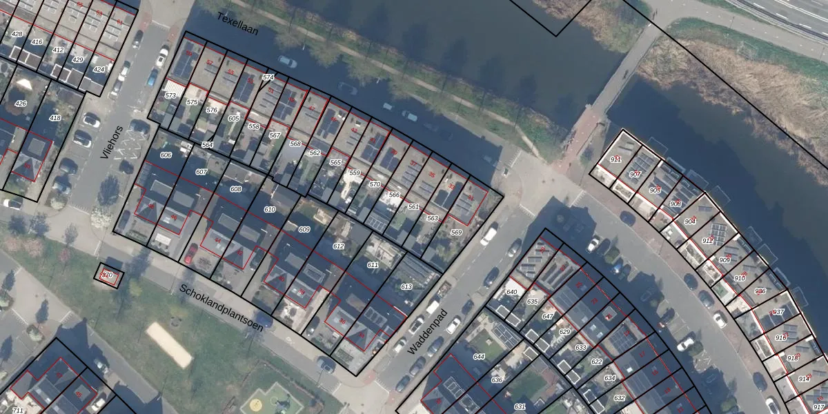 Gebruik de zoekbalk of klik op een perceel om informatie over het perceel te bekijken.