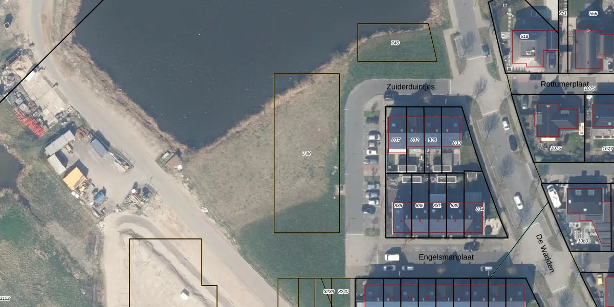 Gebruik de zoekbalk of klik op een perceel om informatie over het perceel te bekijken.