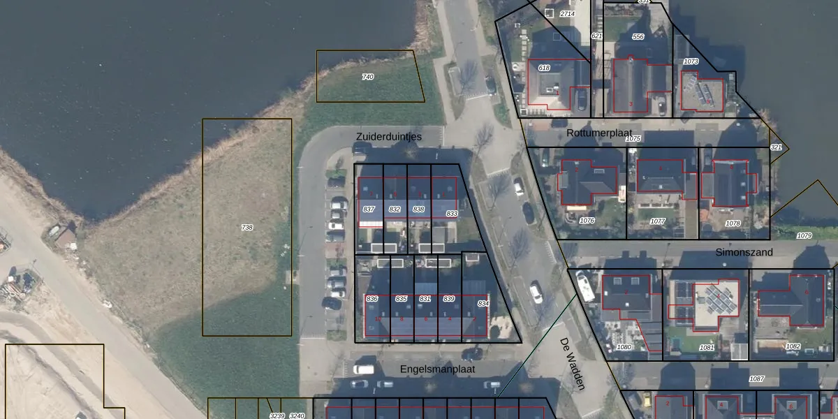 Gebruik de zoekbalk of klik op een perceel om informatie over het perceel te bekijken.